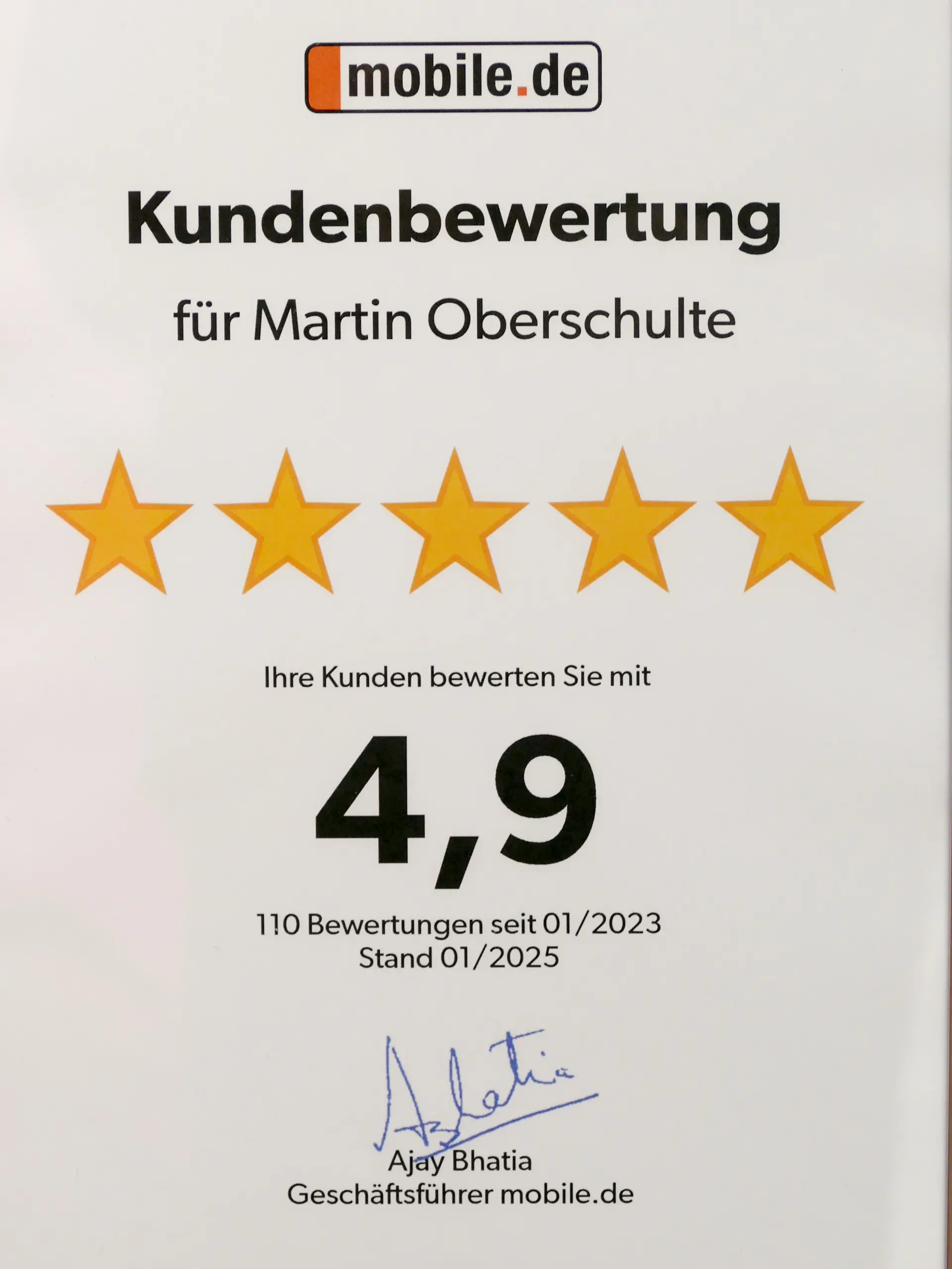 Inzahlungnahme und bundesweite Anlieferung gegen Kostenerstattung möglich! Sofortankauf sehr gut erhaltener Young-/Oldtimer zum fairen Preis incl. Sofortabholung und Abmeldung! Ich freue mich auf Ihren Anruf oder Besuch auf www.oberschulte.com